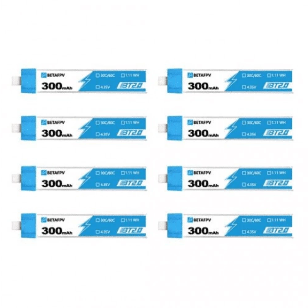 BetaFPV – Set van 8 LiHV 1S 300mAh 30C batterijen (BT2.0)