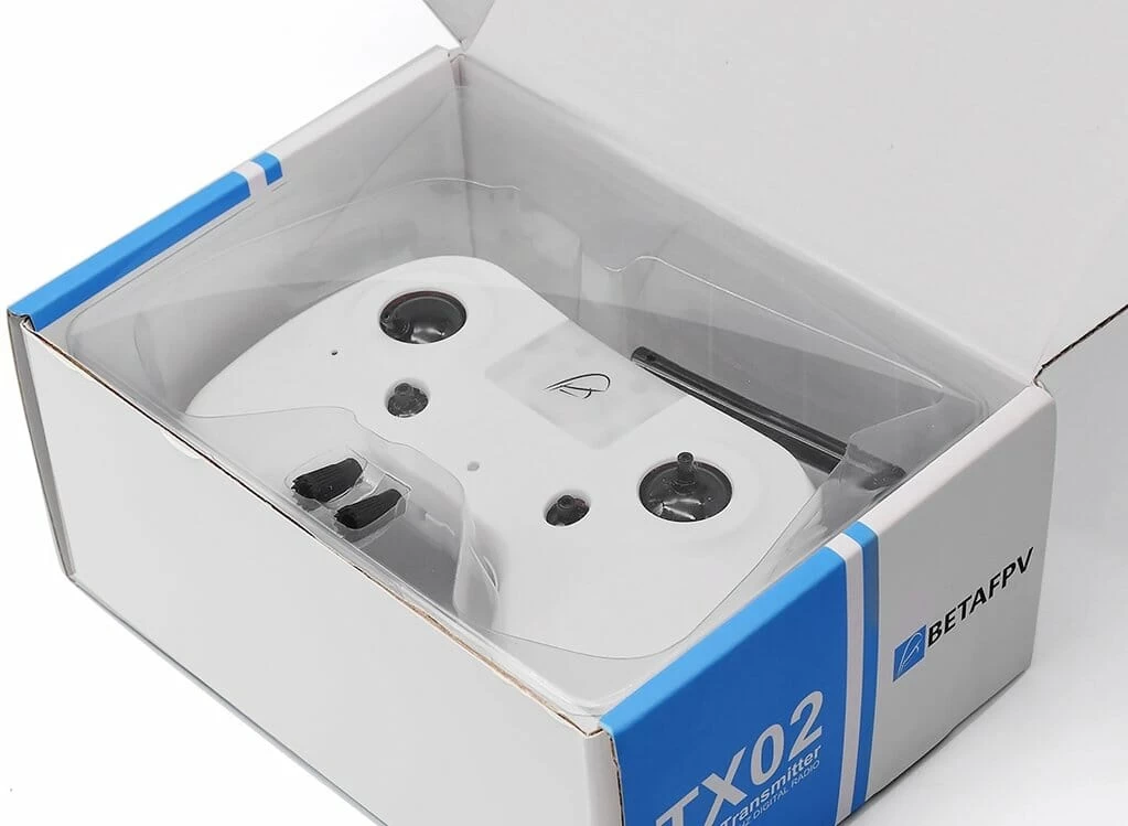 Deze ultra vereenvoudigde radio tx02 zal u toelaten vertrouwd te raken met de bediening van uw betafpv. Perfect om te beginnen zonder jezelf te ruïneren.